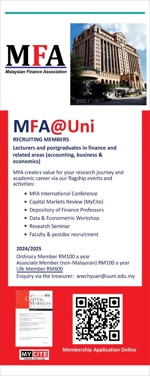 Photo Gallery MFA2025 9th Exco Meeting [Hybrid Meeting] MFA 9th EXCO Meeting MFA 9th EXCO Meeting Album MFA2025 9th Exco Meeting [Hybrid Meeting] MFA2025 8th Exco Meeting [Hybrid Meeting] MFA 8th EXCO Meeting 1 MFA 8th EXCO Meeting 1 Album MFA2025 8th Exco Meeting [Hybrid Meeting] MFA 8th EXCO Meeting 2 MFA 8th EXCO Meeting 2 Album MFA2025 8th Exco Meeting [Hybrid Meeting] MFA2025 7th Exco Meeting [Virtual Meeting] 27th Meeting1 27th Meeting1 Album MFA2025 7th Exco Meeting [Virtual Meeting] 27th Meeting2 27th Meeting2 Album MFA2025 7th Exco Meeting [Virtual Meeting] MFA2025 6th Exco Meeting [Virtual Meeting] AGM1 AGM1 Album MFA2025 6th Exco Meeting [Virtual Meeting] AGM2 AGM2 Album MFA2025 6th Exco Meeting [Virtual Meeting] MFA Annual General Meeting 2024 1 1 Album MFA Annual General Meeting 2024 2 2 Album MFA Annual General Meeting 2024 3 3 Album MFA Annual General Meeting 2024 4 4 Album MFA Annual General Meeting 2024 5 5 Album MFA Annual General Meeting 2024 6 6 Album MFA Annual General Meeting 2024 7 7 Album MFA Annual General Meeting 2024 8 8 Album MFA Annual General Meeting 2024 9 9 Album MFA Annual General Meeting 2024 26th Malaysian Finance Association International Conference 2024 0 Album 26th Malaysian Finance Association International Conference 2024 1-1 1-1 Album 26th Malaysian Finance Association International Conference 2024 1-2 1-2 Album 26th Malaysian Finance Association International Conference 2024 1-4 1-4 Album 26th Malaysian Finance Association International Conference 2024 1-7 1-7 Album 26th Malaysian Finance Association International Conference 2024 1-8 1-8 Album 26th Malaysian Finance Association International Conference 2024 1-9 1-9 Album 26th Malaysian Finance Association International Conference 2024 1-9 1-9 Album 26th Malaysian Finance Association International Conference 2024 1-9x 1-9x Album 26th Malaysian Finance Association International Conference 2024 2-0 2-0 Album 26th Malaysian Finance Association International Conference 2024 2-1 2-1 Album 26th Malaysian Finance Association International Conference 2024 2-2 2-2 Album 26th Malaysian Finance Association International Conference 2024 2-2x 2-2x Album 26th Malaysian Finance Association International Conference 2024 2-3 2-3 Album 26th Malaysian Finance Association International Conference 2024 2-4 2-4 Album 26th Malaysian Finance Association International Conference 2024 2-5 2-5 Album 26th Malaysian Finance Association International Conference 2024 2-5x 2-5x Album 26th Malaysian Finance Association International Conference 2024 4-0x 4-0x Album 26th Malaysian Finance Association International Conference 2024 4-1 4-1 Album 26th Malaysian Finance Association International Conference 2024 4-2 4-2 Album 26th Malaysian Finance Association International Conference 2024 4-3 4-3 Album 26th Malaysian Finance Association International Conference 2024 4-4 4-4 Album 26th Malaysian Finance Association International Conference 2024 4-5 4-5 Album 26th Malaysian Finance Association International Conference 2024 4-5 4-5 Album 26th Malaysian Finance Association International Conference 2024 4-6 4-6 Album 26th Malaysian Finance Association International Conference 2024 4-7 4-7 Album 26th Malaysian Finance Association International Conference 2024 5-1 5-1 Album 26th Malaysian Finance Association International Conference 2024 5-2 5-2 Album 26th Malaysian Finance Association International Conference 2024 5-3 5-3 Album 26th Malaysian Finance Association International Conference 2024 5-3x 5-3x Album 26th Malaysian Finance Association International Conference 2024 MFA2024 4th Exco Meeting & Seminar @UM 2024 UM 4th Exco Meeting 2024 UM 4th Exco Meeting Album MFA2024 4th Exco Meeting & Seminar @UM 2024 UM 4th Exco Meeting2 2024 UM 4th Exco Meeting2 Album MFA2024 4th Exco Meeting & Seminar @UM 2024 UM Seminar 1 2024 UM Seminar 1 Album MFA2024 4th Exco Meeting & Seminar @UM 2024 UM Seminar 2 2024 UM Seminar 2 Album MFA2024 4th Exco Meeting & Seminar @UM 2024 UM Seminar 3 2024 UM Seminar 3 Album MFA2024 4th Exco Meeting & Seminar @UM 2024 UM Seminar 4 2024 UM Seminar 4 Album MFA2024 4th Exco Meeting & Seminar @UM 2024 UM Seminar 5 2024 UM Seminar 5 Album MFA2024 4th Exco Meeting & Seminar @UM 2024 UM Seminar 6 2024 UM Seminar 6 Album MFA2024 4th Exco Meeting & Seminar @UM MFA2024 3rd Exco Meeting [Virtual Meeting] 2024 3rd Exco Meeting1 2024 3rd Exco Meeting1 Album MFA2024 3rd Exco Meeting [Virtual Meeting] 2024 3rd Exco Meeting2 2024 3rd Exco Meeting2 Album MFA2024 3rd Exco Meeting [Virtual Meeting] MFA2024 2nd Exco Meeting & Seminar @UTAR 2024 UTAR 2nd Exco Meeting 1 2024 UTAR 2nd Exco Meeting 1 Album MFA2024 2nd Exco Meeting & Seminar @UTAR 2024 UTAR 2nd Exco Meeting 2 2024 UTAR 2nd Exco Meeting 2 Album MFA2024 2nd Exco Meeting & Seminar @UTAR 2024 UTAR Seminar 0 2024 UTAR Seminar 0 Album MFA2024 2nd Exco Meeting & Seminar @UTAR 2024 UTAR Seminar 1 2024 UTAR Seminar 1 Album MFA2024 2nd Exco Meeting & Seminar @UTAR 2024 UTAR Seminar 2 2024 UTAR Seminar 2 Album MFA2024 2nd Exco Meeting & Seminar @UTAR 2024 UTAR Seminar 3 2024 UTAR Seminar 3 Album MFA2024 2nd Exco Meeting & Seminar @UTAR 2024 UTAR Seminar 4 2024 UTAR Seminar 4 Album MFA2024 2nd Exco Meeting & Seminar @UTAR 2024 UTAR Seminar 5 2024 UTAR Seminar 5 Album MFA2024 2nd Exco Meeting & Seminar @UTAR 2024 UTAR Seminar 6 2024 UTAR Seminar 6 Album MFA2024 2nd Exco Meeting & Seminar @UTAR MFA2024 1st Exco Meeting & Seminar @UPM 2024 Poster 2024 Poster Album MFA2024 1st Exco Meeting & Seminar @UPM 2024 UPM 1st Exco Meeting 0 2024 UPM 1st Exco Meeting 0 Album MFA2024 1st Exco Meeting & Seminar @UPM 2024 UPM 1st Exco Meeting 1 2024 UPM 1st Exco Meeting 1 Album MFA2024 1st Exco Meeting & Seminar @UPM 2024 UPM 1st Exco Meeting 2 2024 UPM 1st Exco Meeting 2 Album MFA2024 1st Exco Meeting & Seminar @UPM 2024 UPM 1st Exco Meeting 3 2024 UPM 1st Exco Meeting 3 Album MFA2024 1st Exco Meeting & Seminar @UPM 2024 UPM 1st Exco Meeting 4 2024 UPM 1st Exco Meeting 4 Album MFA2024 1st Exco Meeting & 